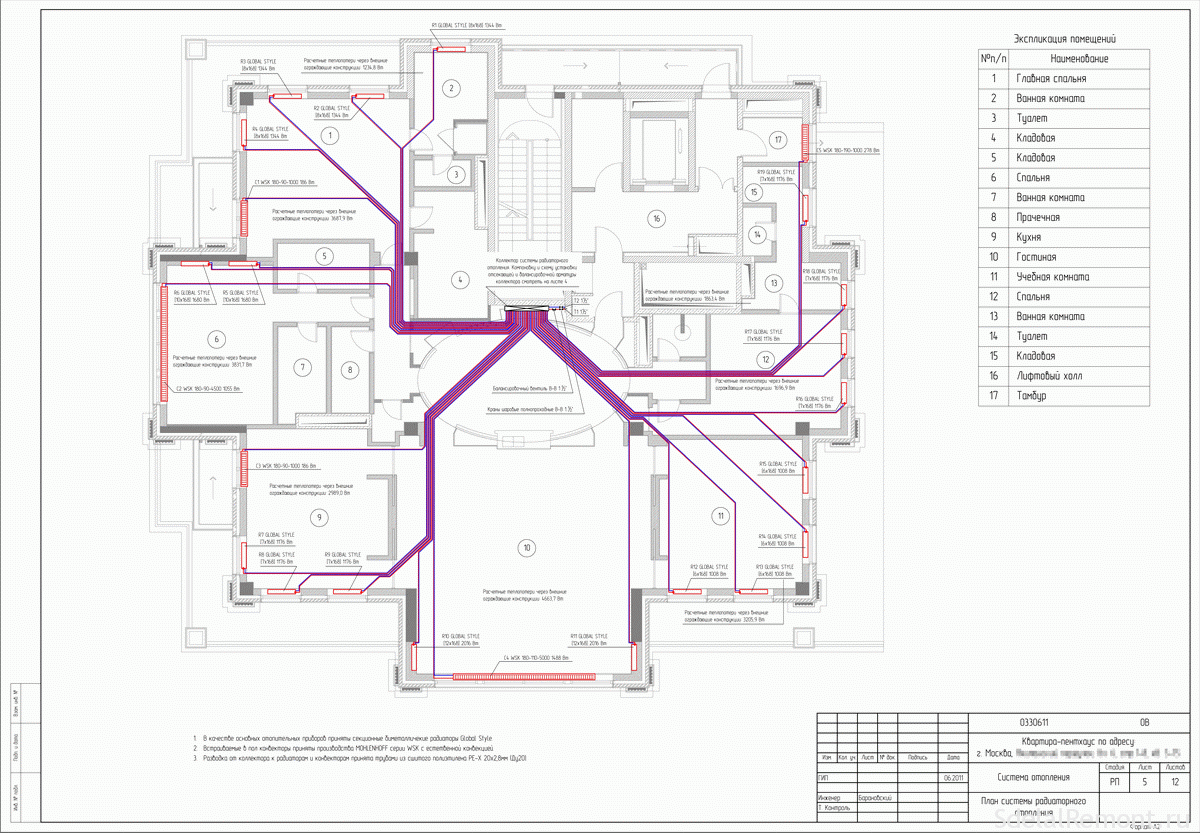 Также довольно распространенное применение находит и двухтрубная система отопления с нижней разводкой. Такая конструкция имеет несколько характерных особенностей, среди которых:
