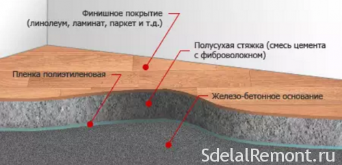 Но это только лишь основная часть из всех тех пунктов, которые рекомендуют осуществлять устройство полусухой стяжки пола даже собственными силами. Стоит отметить, что не отмечается каким-либо весомых отрицательных качеств, если работы выполняются своими руками. Это говорит о том, что данный способ является очень практичным и качественным по итоговому результату.
