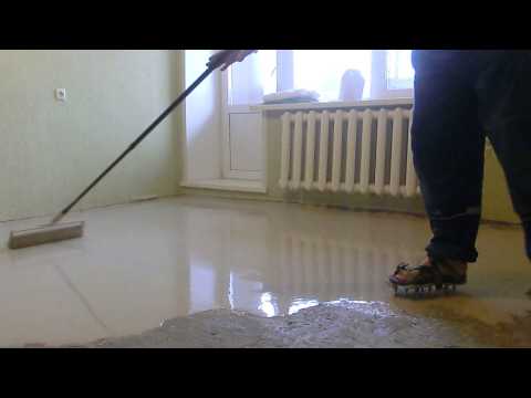 При выборе нивелиров, их засыпают в воду, а не в обратном порядке, как при приготовлении бетонного раствора. После замешивания полученная масса должна отстояться в течение нескольких минут, и можно приступать к заливке. Но сам процесс следует выполнять как можно быстро, так как самовыравнивающиеся смеси характеризуются быстрым схватыванием. Некоторые специалисты даже рекомендуют при самостоятельном выполнении выравнивания основания пола под ламинат производить замешивание смеси частями, которых будет достаточно для распределения по поверхности в установленными временные рамки. Далее замешивается вторая часть раствора и так до самого окончания.